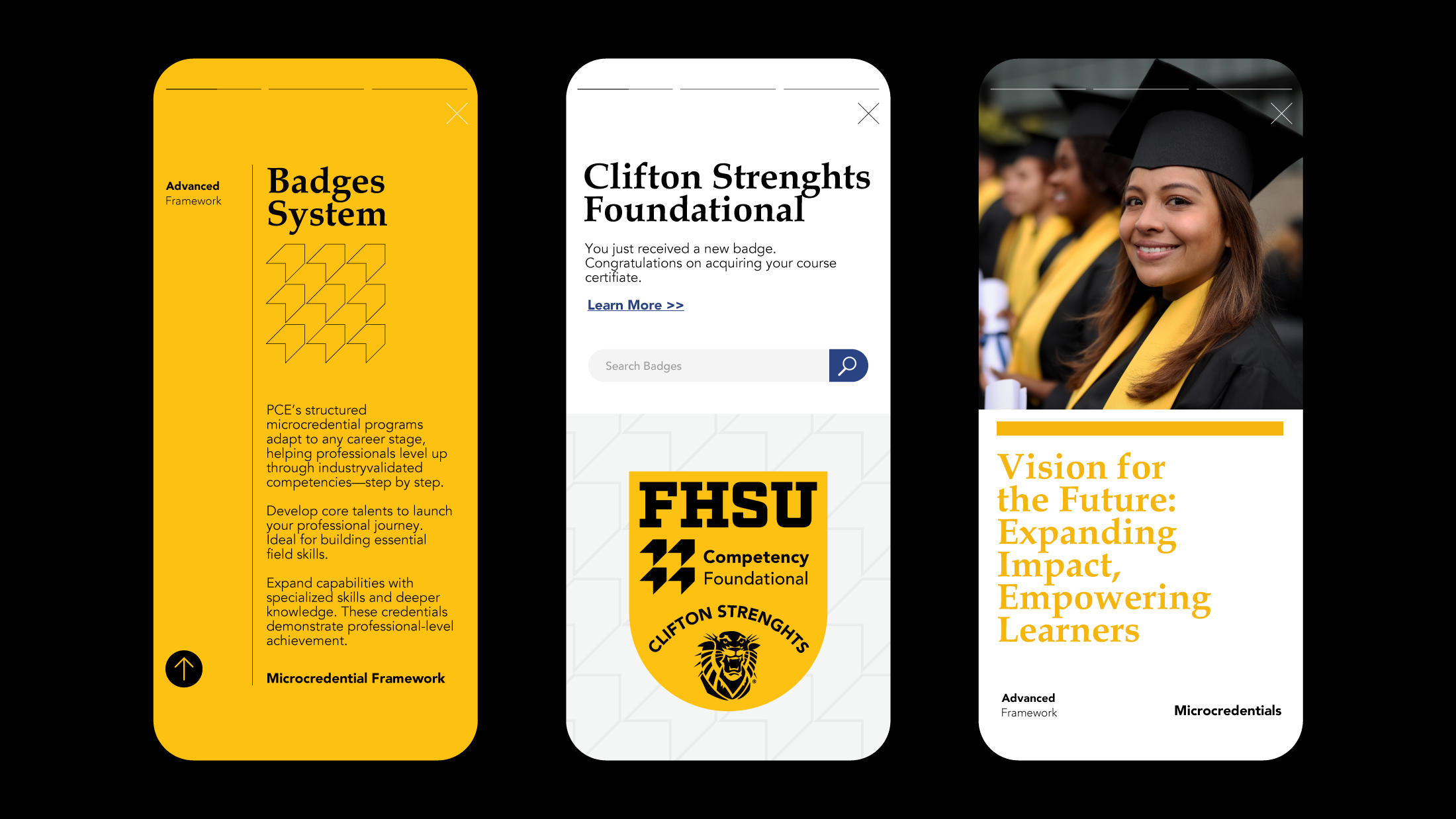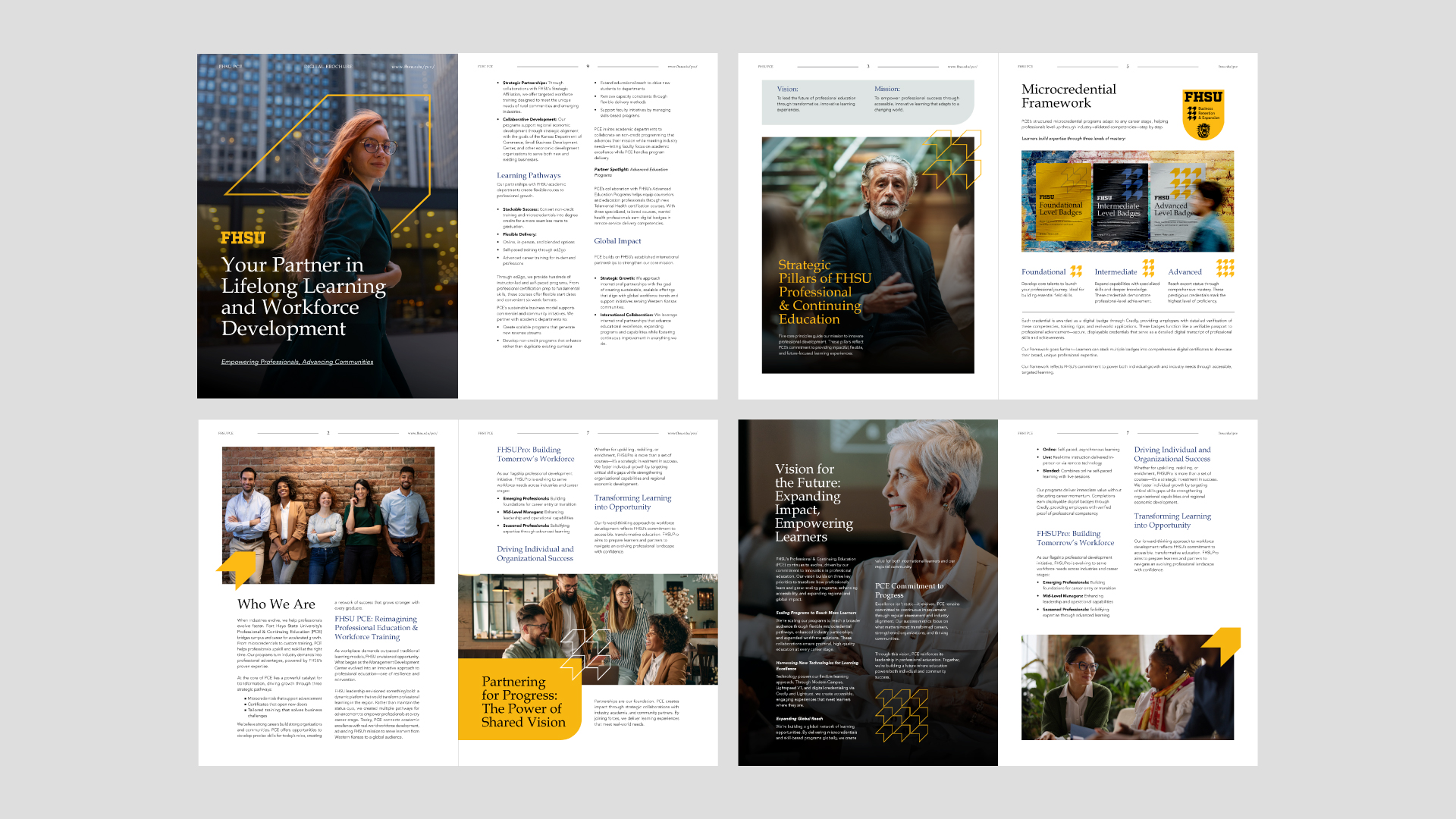 A comprehensive brand book was developed to define and document the full PCE identity system. It outlines the brand vision, mission, strategy, and tone of voice, followed by detailed guidelines for logo usage, typography, primary and secondary colors, and color application rules. The document also formalizes the core brand elements, iconography, badge hierarchy, and complete badge system, ensuring clarity in how competency levels are represented. To support real world execution, the brand book includes application examples across website, social media, and print materials, providing a clear reference for consistent implementation across all touchpoints.