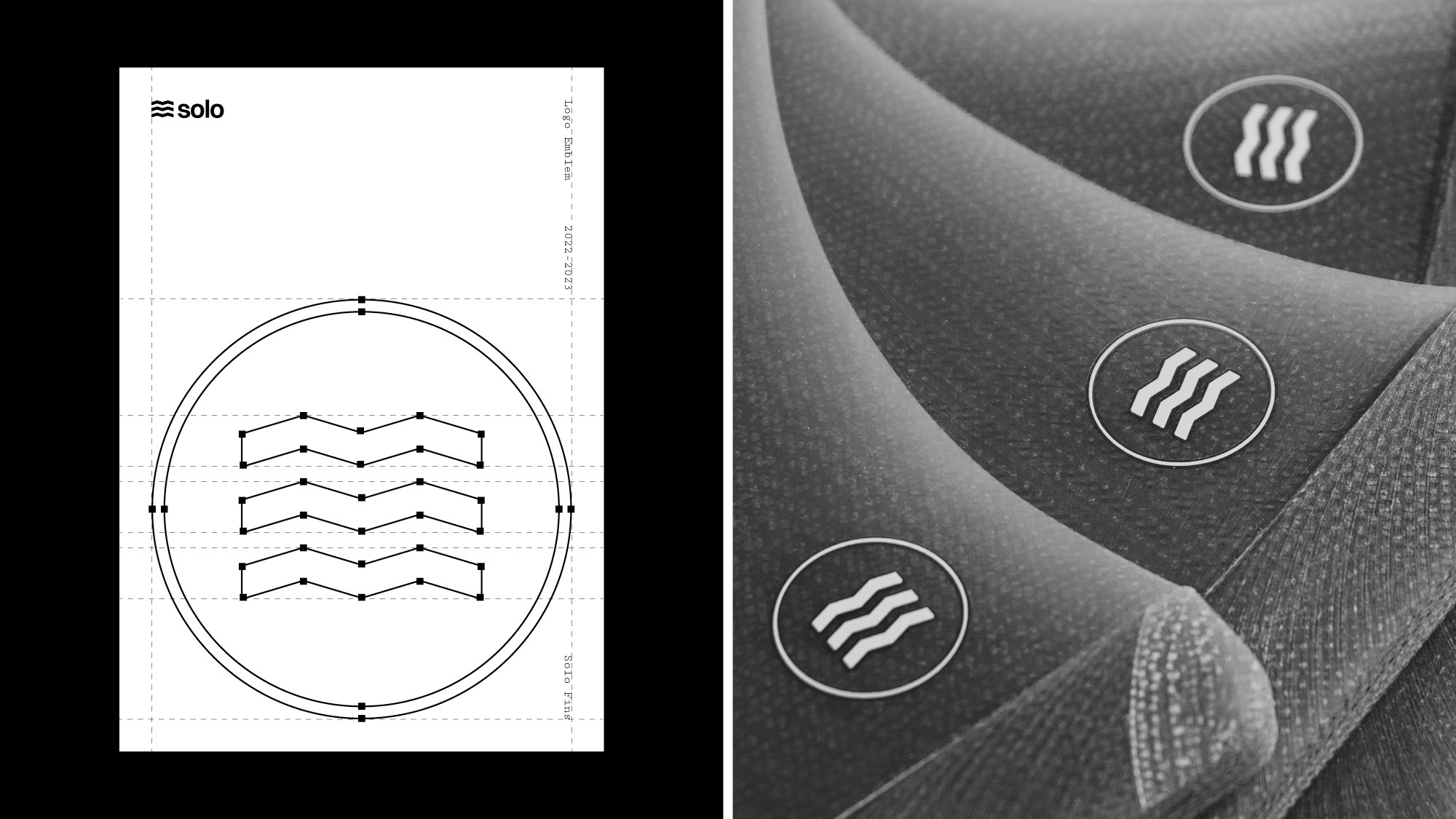 The logo emblem was developed through a deep analysis of waveforms and shapes. Rather than relying on familiar wave symbols commonly used across surf brands, the goal was to explore a new visual approach that felt original and innovative while still being an abstract representation of waves. This led to the study of the A frame wave, a perfectly balanced formation where the wave’s peak breaks downward as its shoulders rise upward, creating a dynamic interplay of opposing forces. Combined with the natural rhythm of wave sets, where waves arrive in sequences rather than isolation, this concept informed the final emblem. The result is a mark that captures visual balance, movement, and rhythm, translating the perfection of rideable waves into a refined and distinctive symbol for the brand.